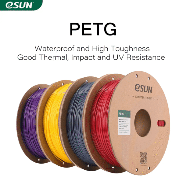 The eSun PETG 3D Filament combines the benefits of ABS and PLA filaments. It is an easy-to-print material with high toughness and heat resistance. PETG filament also offers good layer adhesion and flexibility.